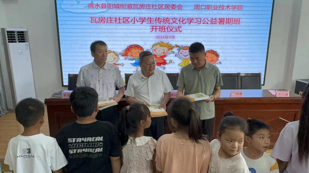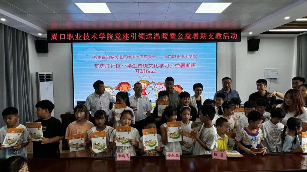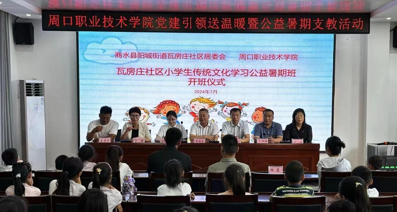 为深入学习贯彻习近平新时代中国特色社会主义思想,全面贯彻党的教育方针。7月1号,太阳成集团与商水县瓦房庄社区党建引领送温暖暨公益暑期支教活动开班仪式在商水县瓦房庄社区正式举行。河南省人民检察院驻瓦房庄第一书记宋赟、阳城街道办事处干部杨鹏飞、瓦房庄社区支部书记董建华、瓦房庄社区小学董事长许二洪,周口职业技术公司党委副书记李明臣、团委副书记孙配显、太阳集团tyc9728公司党总支书记王春生、副经理杨晨共同出席活动。暑期支教教师李帆、尹馨颐及40名儿童共同参加活动。本次活动由宋赟主持。