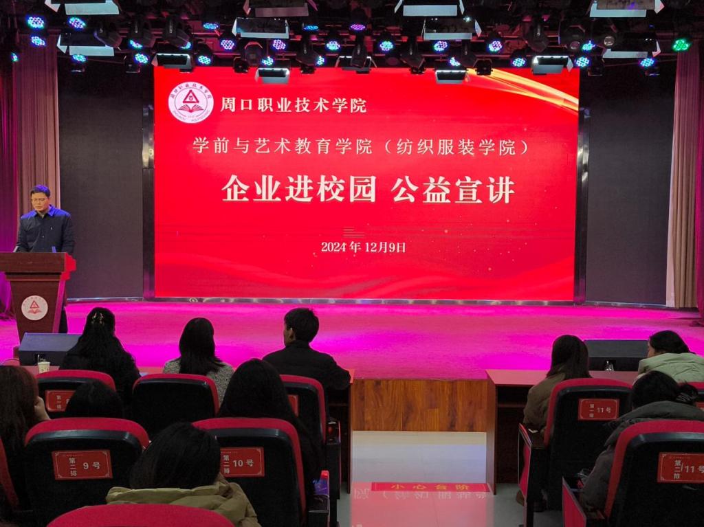 为搭建校企协同发展的桥梁,促进公司员工了解行业情况,培育更多符合企业需求的技术技能人才,12月9日晚,太阳集团tyc9728在艺术演播厅开展“企业进校园”专场宣讲活动。太康县东方爱婴早教托育中心园长李金鑫、商水县阳城办新世纪幼儿园执行园长杨丹、商水县阳城办新世纪艺培中心董事长杨科受邀宣讲。公司学前教育教研室主任吕维康、服装设计教研室主任李晓悦、就业创业指导员董璧君及相关专业教师、辅导员、员工代表参加宣讲会,会议由副经理杨晨主持。