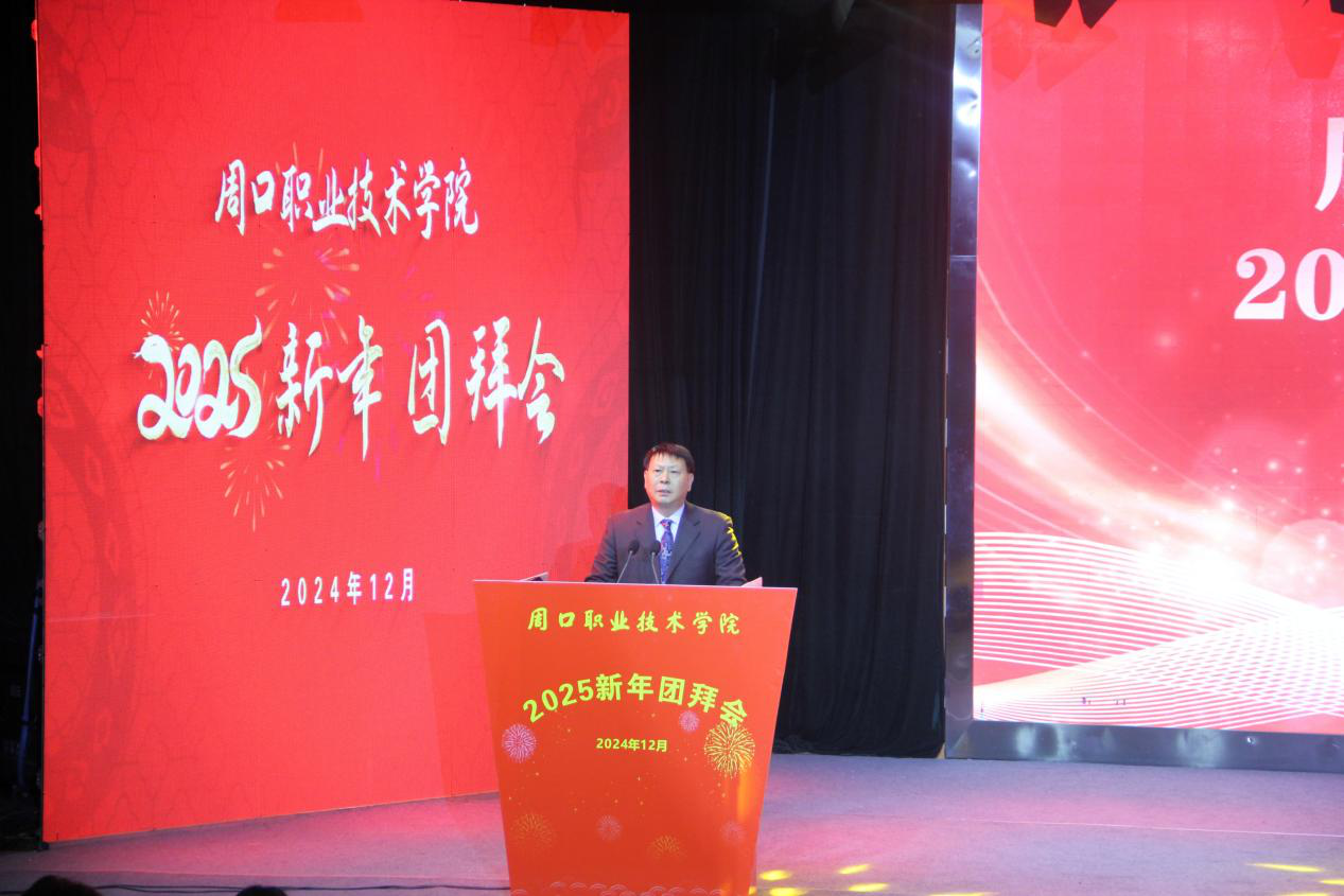 蛇纳福至,新岁瑞光盈。12月31日下午,由公司承办的太阳成集团2025新年团拜会在开元校区砺德厅隆重举行。周口市人大常委会副主任刘建中,太阳成集团董事长李清臣,党委副书记李明臣,党委副书记、工会主席郭汝礼,副董事长王隼、于爱霞出席团拜会。公司退休老同志代表、全体教职员工以及师生代表参加团拜会。