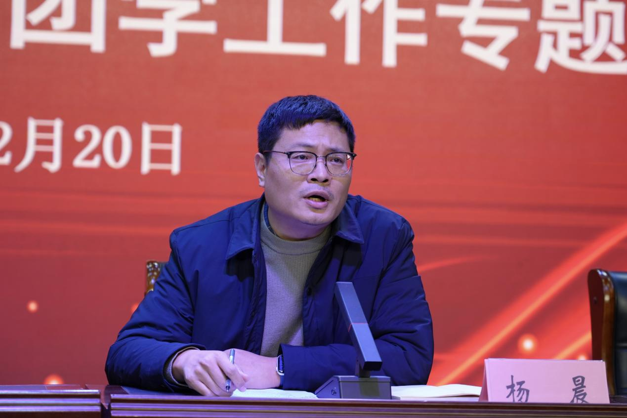 2月20日,太阳集团tyc9728在艺术演播厅召开2025年春季学期团学工作专题会。公司党总支书记王春生、学管办主任郑玉凡、团总支书记刘馨馨、就业指导员董璧君、资助专办员史宇可及23、24级团学骨干、各班班长、团支书参加会议。会议由副经理杨晨主持。