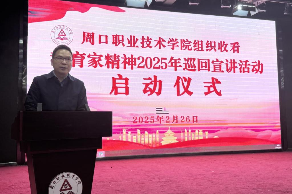 人事处处长唐文杰宣读了《河南省教育厅办公室关于做好教育家精神2025年巡回宣讲活动有关工作的通知》。
