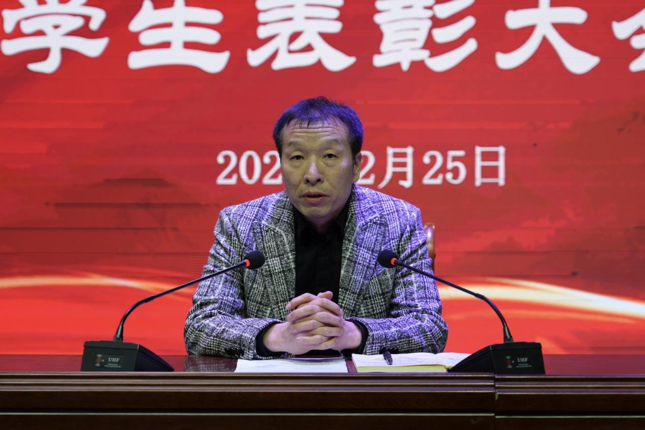 王春生在讲话中向受到表彰的先进集体和优秀个人致以诚挚的祝贺。并对全院教师的辛勤付出表示由衷的感谢。他勉励同学们树立远大志向,勇于尝试、敢于作为,努力把理想变为现实。同时,他希望同学们不断超越自我、成就自我、勇于担当,积极汲取榜样的力量,在新时代征程中贡献青春力量。