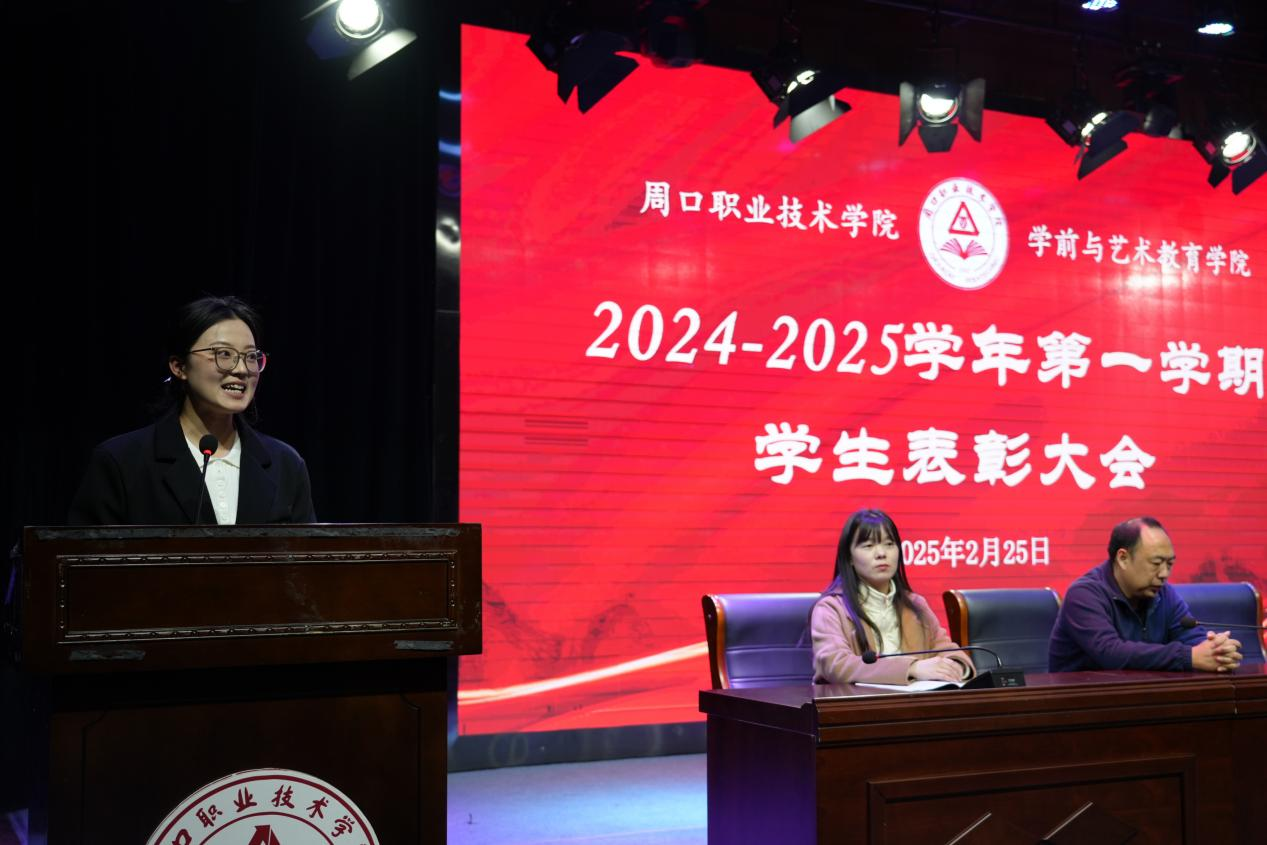 杨晨宣读《太阳集团tyc9728关于表彰2024-2025学年第一学期公司辅导员、三好员工、十佳班长、优秀员工干部、优秀班集体的决定》。公司领导为获奖员工颁发荣誉证书、奖杯。