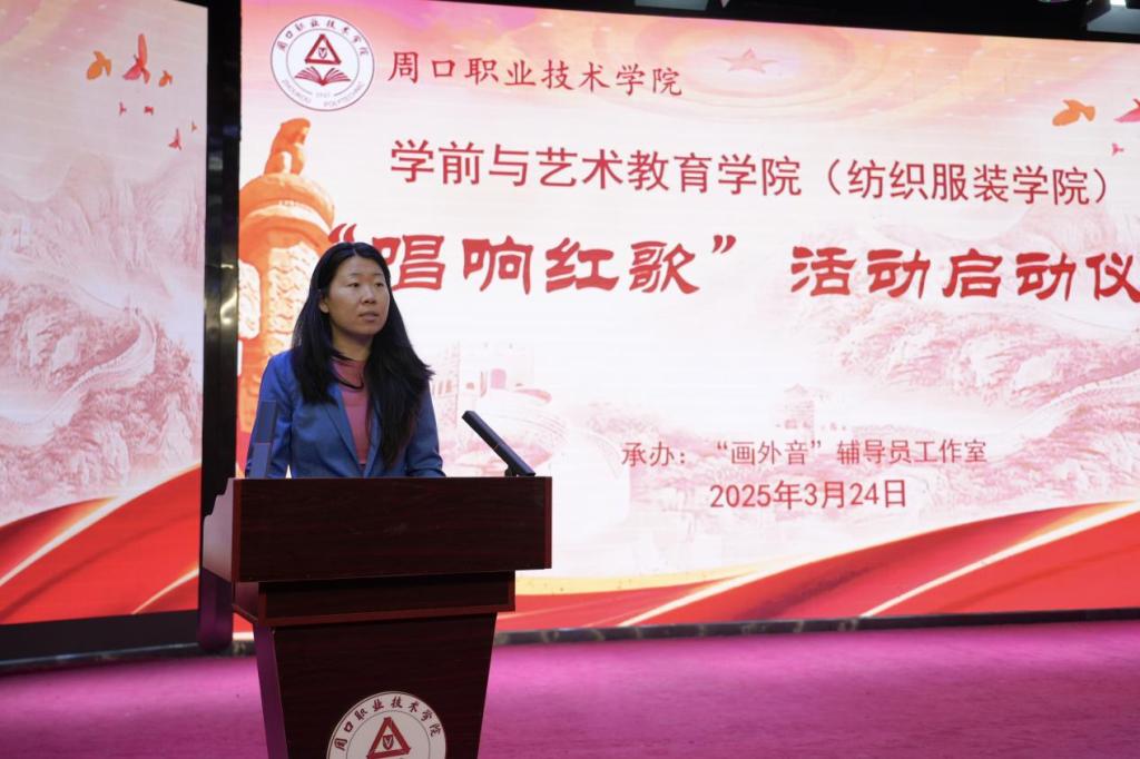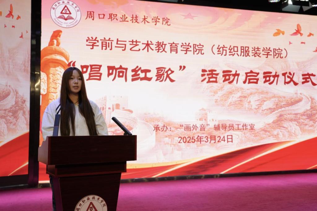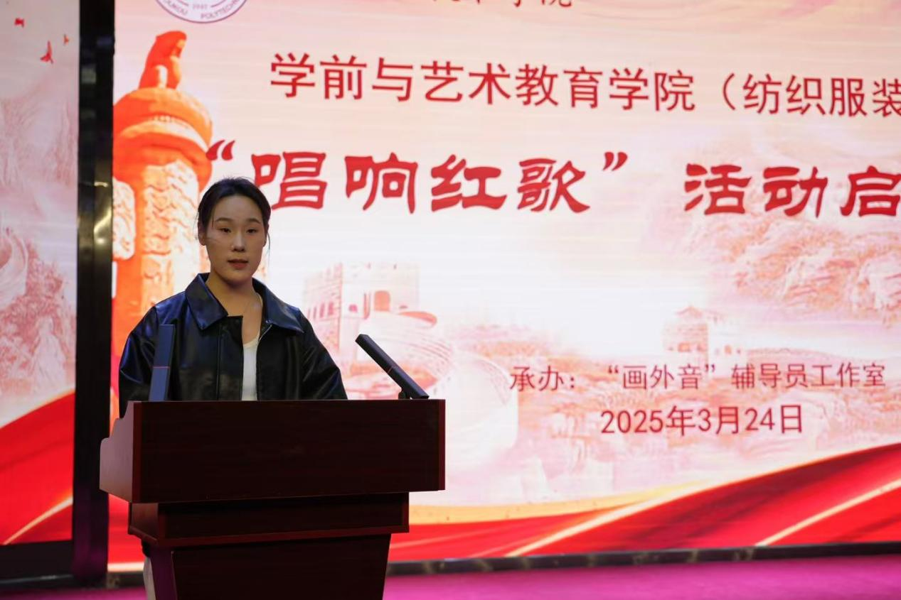 员工代表殷幸杰、王玮琪同学依次登台发言,她们表示将积极参与活动,以红歌精神为指引,不断厚植家国情怀和爱国主义精神。