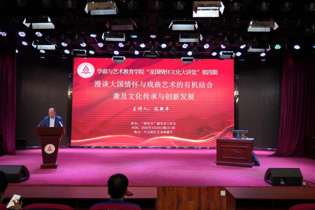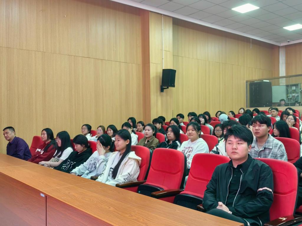 陈新丰以《漫谈大国情怀与戏曲艺术的有机结合兼及文化传承与创新发展》为题,从戏曲发展脉络入手,结合《花木兰》等经典戏曲曲目,深入剖析其中蕴含的家国情怀与中华民族精神,通过分析戏曲艺术形式与文化内核,阐述了戏曲作为民族文化载体的独特价值。他强调戏曲发展需立足时代,不断坚持守正创新,在增强文化自信中发挥更大作用。最后,他呼吁同学们积极提升自我,深耕文化积淀,为强国建设贡献自己的青春力量。