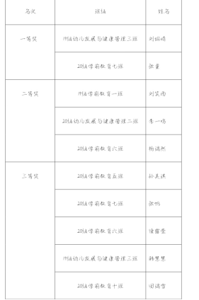 最终经过认真评比,评选出一等奖两名,二等奖三名,三等奖五名。获奖名单如下: