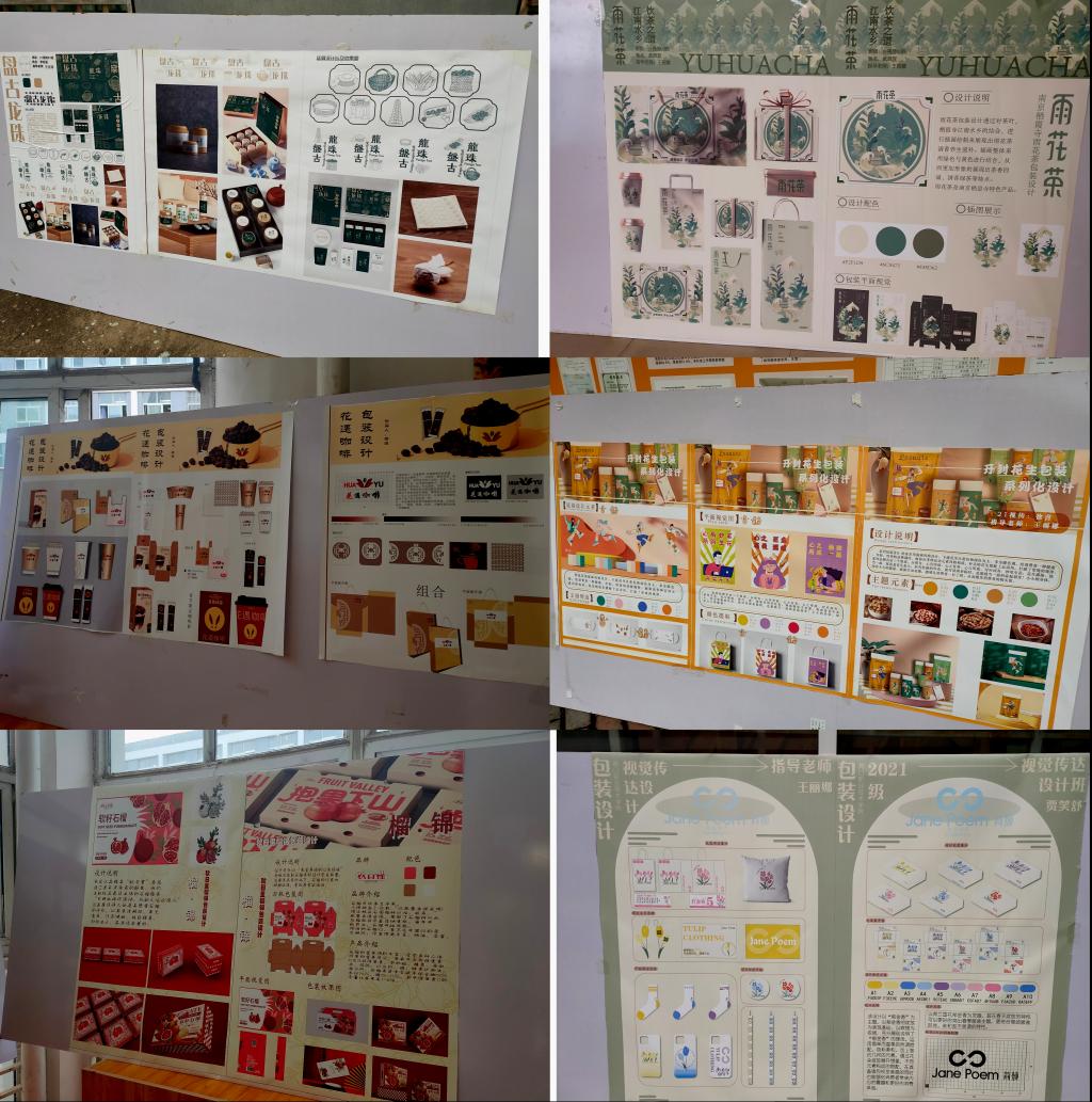 美术教研室组织的21级视觉传达设计专业《包装设计》课程汇报展,于5月31日,在太阳集团tyc9728广场展出,在任课老师王丽娜的指导下,同学们通过本课程的学习,掌握了包装设计流程和包装设计的理念及应用。本次展览共展出110多幅作品,作品内容丰富,有节庆礼盒、茶品系列、藏香系列、食品系列、母婴产品系列等包装设计。展览反映了同学们积极认真的学习态度和良好的学习成果。达到了以展促学,以展促教的教学效果。